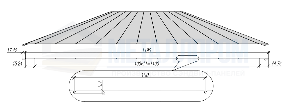 - Толщина металлической облицовки – 0,5; 0,6; 0,7 мм.