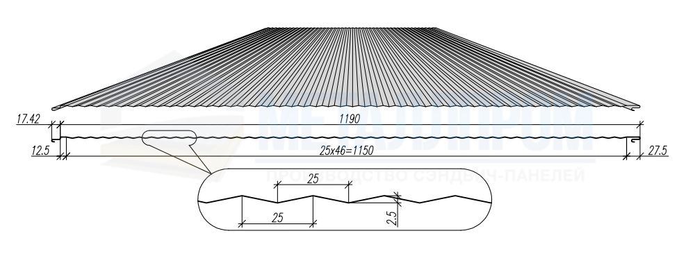 Разнообразные варианты профилирования облицовки стеновых сэндвич-панелей необходимы для усиления жесткости конструкции, главным образом это актуально для больших габаритов.