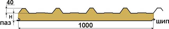 - H – толщина утеплителя (высота панели) - 50 (60); 80; 100; 120; 150(175); 200(225); 250 мм.