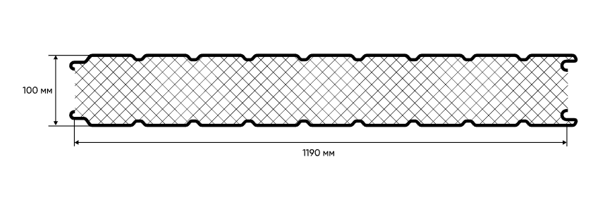 • H – толщина утеплителя (высота панели) – 50; 60; 80; 100; 120; 150(175); 200(225); 250 мм.